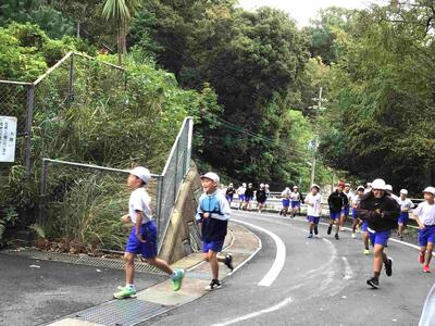 本日は1~3年生がグラウンド、4~6年生がグラウンドから校舎周りを走るコースで練習しました。