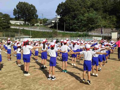 低・中・高学年に分かれての集団演技の練習はもちろんのこと、応援練習、リレー、綱引きなど、休み時間も大忙しです。応援リーダーを中心に、各色の団結力も高まってきています。