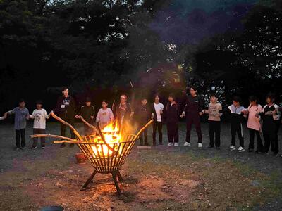 燃え盛る火を中心に、それぞれのグループで準備した出し物を楽しみました。