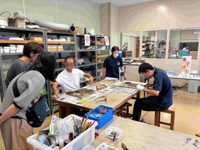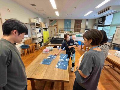 また、生徒のみなさんが取り組んでおられる「陶芸」「藍染め」「ガラス工芸」についても、実際に体験させていただきました。