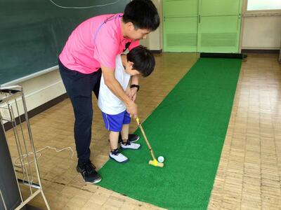 地域の方から、竹を利用して作ったゴルフセットをいただきました。