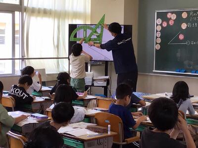 4年生の算数科では、分度器を使って正しく角の大きさを測る学習をしています。