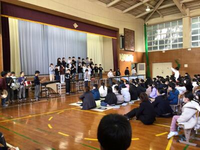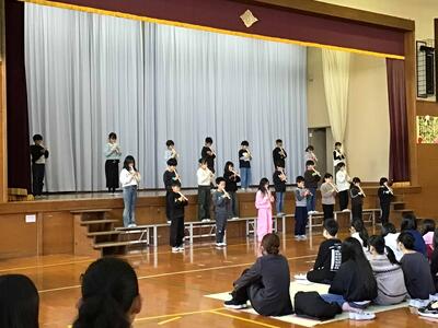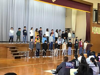 2/14 「6年生を送る会」 投稿: 学校管理者 (14:01) カテゴリー: 今日の出来事 本日、「6年生を送る会」を開催しました。 どの学年も、6年生にありがとうの気持ちを伝えようと、一生懸命準備をしてきました。 始まる前には、「大きな声で劇をしたい。」「6年生に楽しんでもらいたい。」と頑張りたいことを話していた子どもたちですが、どれも達成できたと思います。どの学年の発表も素晴らしかったです。 ご参観いただいた保護者の皆様、地域の皆様、ありがとうございました。 Tweet -