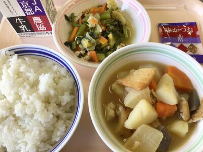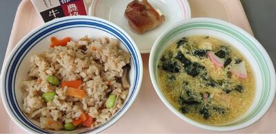 きのこごはん とり肉の照り焼き かきたま汁 牛乳