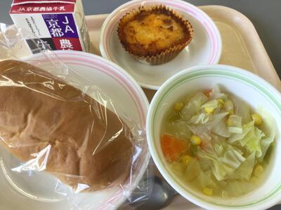 味付パン シェパードパイ風 コンソメスープ 牛乳