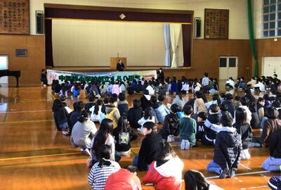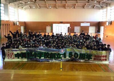 横断幕のお披露目 投稿: 学校管理者 (09:16) 創立150周年をお知らせする横断幕が完成しました。終業式の後、記念行事実行委員長にお話をいただき、全校のみんなにお披露目をしました。横断幕は児童昇降口上に掲示していますので、ご来校の際にはぜひご覧ください。 Tweet -