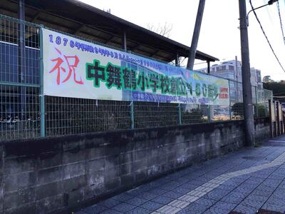 中総合会館にも横断幕を… 投稿: 学校管理者 (15:38) 中舞鶴小学校創立150周年をお知らせする横断幕を、中総合会館近くのフェンスにも掲示しました。 お車などで近くを通られる際には、ぜひご覧ください。 Tweet -