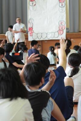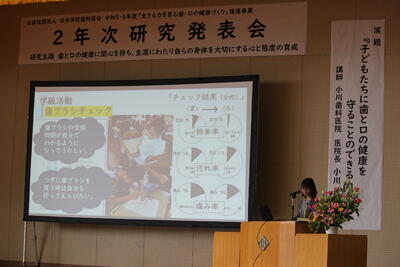 令和5・6年度「生きる力を育む歯・口の健康づくり推進事業」2年次研究発表会を実施しました。 投稿: 学校管理者 (2024/06/28) 【研究主題】 歯と口の健康に関心を持ち、生涯にわたり自らの身体を大切にする心と態度の育成 続きを読む【研究発表リーフレット】 リーフレット.pdf 【学習指導案】 ひばり学級「じょうぶな歯をつくろう」.pdf 1年生「噛むことのよさを知ろう」.pdf 2年生「自分の歯はかせになろう」.pdf 3年生「よくかんで食べよう」.pdf 4年生「オリジナルお口体操 あ・い・う・え・お」.pdf 5年1組「噛む力で運動能力向上!」.pdf 5年2組「噛む力で運動能力向上!」.pdf 6年生「生活習慣病の予防」.pdf閉じる -